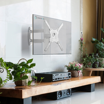 Кронштейн Onkron M4 отличает элегантный и сдержанный дизайн. Модель белого цвета прекрасно смотрится в светлых интерьерах. Стальная конструкция кронштейна рассчитана на поддержку телевизоров диагональю от 32 до 65 дюймов и весом до 35 кг. Система поворотных механизмов позволяет без труда регулировать положение экрана по вертикали и горизонтали. Благодаря кронштейну ТВ-панель можно почти вплотную придвинуть к стене или отодвинуть на комфортное для себя расстояние. Высокое качество изделия подтверждает 5-летняя гарантия производителя.