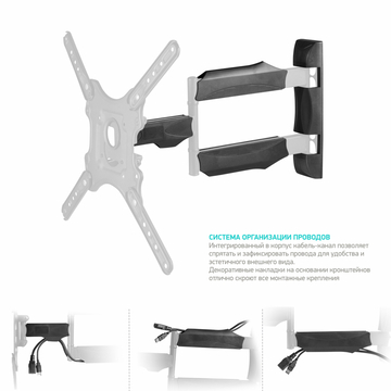 Встроенный в корпус кабель-канал позволит спрятать и зафиксировать провода для удобства и эстетичного внешнего вида, а пластиковые декоративные накладки скроют всевозможные монтажные крепления.