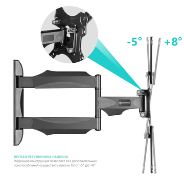 Надежная конструкция позволит осуществить наклон телевизора на угол от -5° ~ +8°.