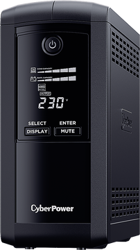CyberPower VP1000ELCD – ИБП с надежной защитой от скачков, всплесков напряжения и других сбоев в электросети и для домашнего и офисного оборудования. Технология GreenPower UPS позволяет повысить эффективность работы, минимизировать энергопотребление и, как следствие, снизить затраты на электропитание. Встроенный автоматический регулятор напряжения (AVR) постоянно поддерживает напряжение в безопасном для подключаемого оборудования диапазоне.