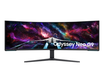 Samsung Odyssey Neo S57CG952NI — 57" игровой монитор с разрешением Dual UHD обеспечивает эффект полного погружения за счёт диагонали 57" и изгиба 1000R.