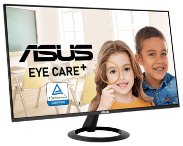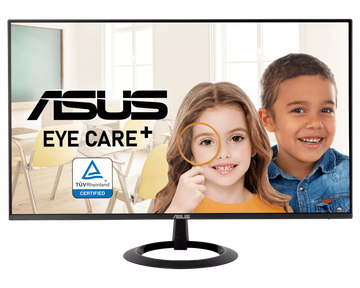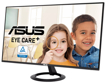 ASUS VZ27EHF Eye Care Gaming — 27" игровой дисплей Full HD (1920 x 1080) со светодиодной подсветкой и IPS-панелью с широким углом обзора 178°. Он также оснащен сертифицированными TÜV Rheinland технологиями устранения мерцания и подавления синего света, обеспечивающими комфортный просмотр.