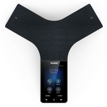 Черная акустически прозрачная ткань не препятствует проникновению звука, при этом устойчива к воздействию воды, жира и других загрязняющих веществ. Ультратонкий корпус телефона, устойчивое положение на рабочем столе, а также специальный разъем для скрытой проводки подчеркивает деловой стиль конференц-зала. Интуитивно понятный интерфейс на базе ОС Android 9.0 позволяет пользователям начинать конференцию по нажатию одной кнопки.
