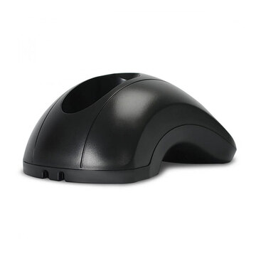 Конструкция сделана из прочного пластика. Форма корпуса гарантирует ее устойчивость. Нижняя часть основания не скользит на любых поверхностях. За надежное крепление устройства отвечает магнитный фиксатор. Прибор легко устанавливается на держатель и быстро извлекается из слота. Возможна перенастройка на работу через USB-COM с помощью настроечного штрих-кода.