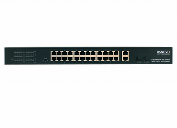 24 × Fast Ethernet RJ45+PoE client2 × Gigabit Ethernet RJ45+LC uplink |