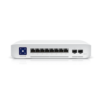 Ubiquiti Switch Enterprise 8 PoE (USW-Enterprise-8-PoE) – коммутатор для высоконагруженных систем, является более производительным аналогом коммутатора US-8-150W. Оснащен восемью портами RJ45 2.5 гигабита с поддержкой PoE+ 802.3af/at и двумя портами SFP+ для установки трансиверов 10 гигабит. USW-Enterprise-8-PoE предназначен для полноценного развертывания современных беспроводных сетей стандарта Wi-Fi 6.