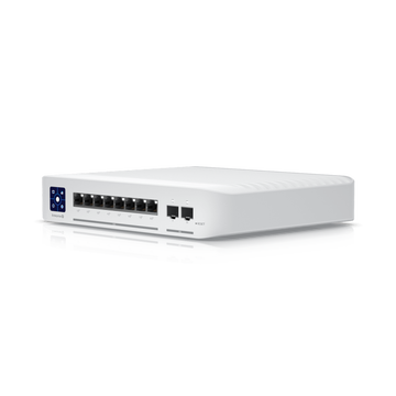 Сам же UniFi Switch Enterprise 8 PoE имеет автоматическое распознавание 802.3at PoE+ на всех 8 RJ45 портах, а так же оснащен двумя магистральными портами 10 Гбит/с SFP+ для присоединения к точкам доступа WiFi 6 и оптоволоконным линиям. Сенсорный жидкокристаллический дисплей 1,3" отображает текущее состояние и режим работы коммутатора. Используя его можно внести корректировки в параметры коммутатора, а также просмотреть некоторую статистическую информацию не прибегая к графическому интерфейсу.