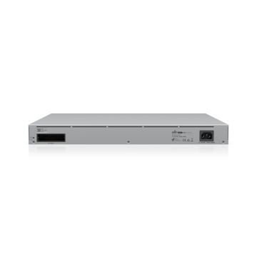 Питание осуществляется встроенным блоком питания мощностью 660 Вт с одинарным подключением к сети переменного тока в диапазоне напряжений 100-240 В. Резервирование можно обеспечить с помощью UniFi USP-RPS (приобретается отдельно) через встроенный интерфейс USP RPS.