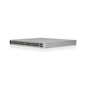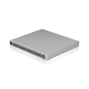 Ubiquiti Switch Pro 48 PoE (USW-Pro-48-POE) – 48-портовый стоечный гигабитный Layer3-коммутатор из линейки UniFi Pro с подачей питания по PoE+ и PoE++ общей мощностью 600 Вт с 4 дополнительными слотами SFP+, возможностью резервирования питания, сенсорным дисплеем и почти бесшумной системой охлаждения.