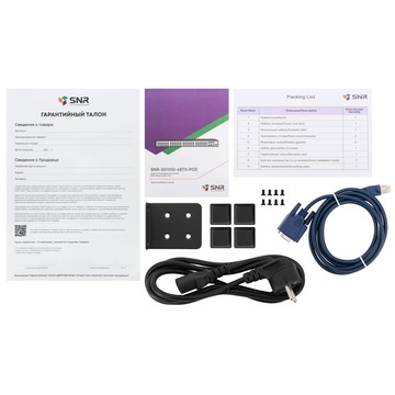 Кабель RS-232 (консольный порт), Кабель питания, Набор для монтажа, Резиновые ножки, Руководство |