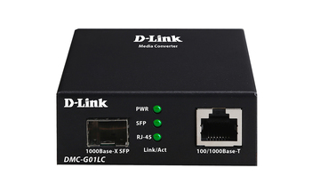 Медиаконвертер DMC-G01LC преобразует сигнал стандарта 100/1000Base-T по витой паре в сигнал стандарта 1000Base-X по оптическому кабелю.