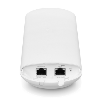 NanoStation 5AC получила два гигабитных Ethernet порта, один из которых может использоваться для сквозного подключения любого другого оборудования Ubiquiti, например, камеры UniFi Video. Питание организованно по схеме PoE 24.