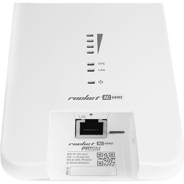 Rocket 5AC Prism Gen2, как и базовая версия, использует частотный диапазон 5 Ггц и не имеет штатных встроенных антенн, что делает устройство максимально универсальным.