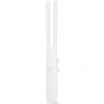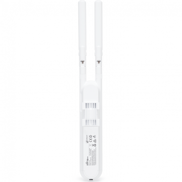 Длина корпуса UniFi ac Mesh составляет всего лишь 20 см. Устройство имеет две съемные WiFi антенны, привинчивающиеся к разъемам, расположенным сверху корпуса. Несмотря на компактность UniFi Mesh получила мощную двухдиапазонную радиочасть с независимыми модулями, позволяющую использовать одновременна обе полосы частот.